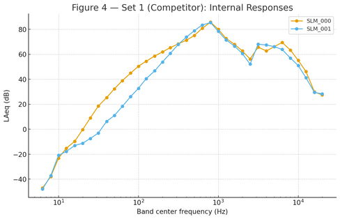 Model M108 had a small difference (4.7 dB) between left and right earphones. The other brand had a big difference (over 21 dB), which can make the sound feel unbalanced or off-center.